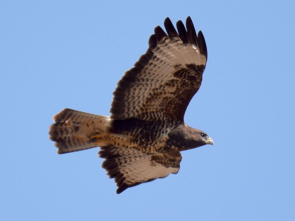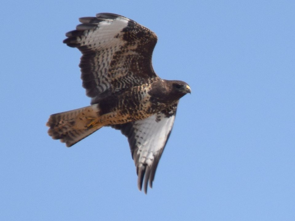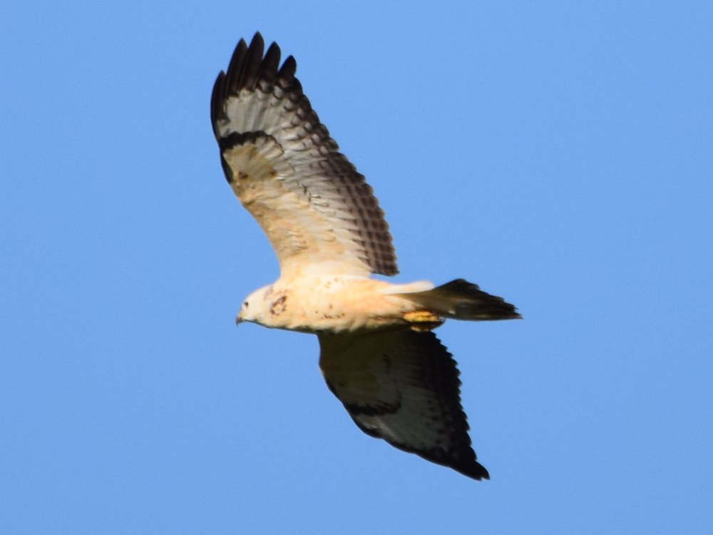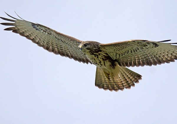 Nahaufnahmen von fliegenden Mäusebussarden (Buteo buteo) mit unterschiedlicher Gefiederfärbung: die meisten sind grau, beige und braun aber auch einige mit fast weißem Federkleid (helle Morphe). Entdeckt und fotografiert im Havelland und in der Uckermark. Man trifft sie bei uns ganzjährig an, während Milane, Fischadler und andere Greifvögel im Herbst wegziehen. Ein Wespenbussard ist als Zufallsentdeckung auch dabei.
